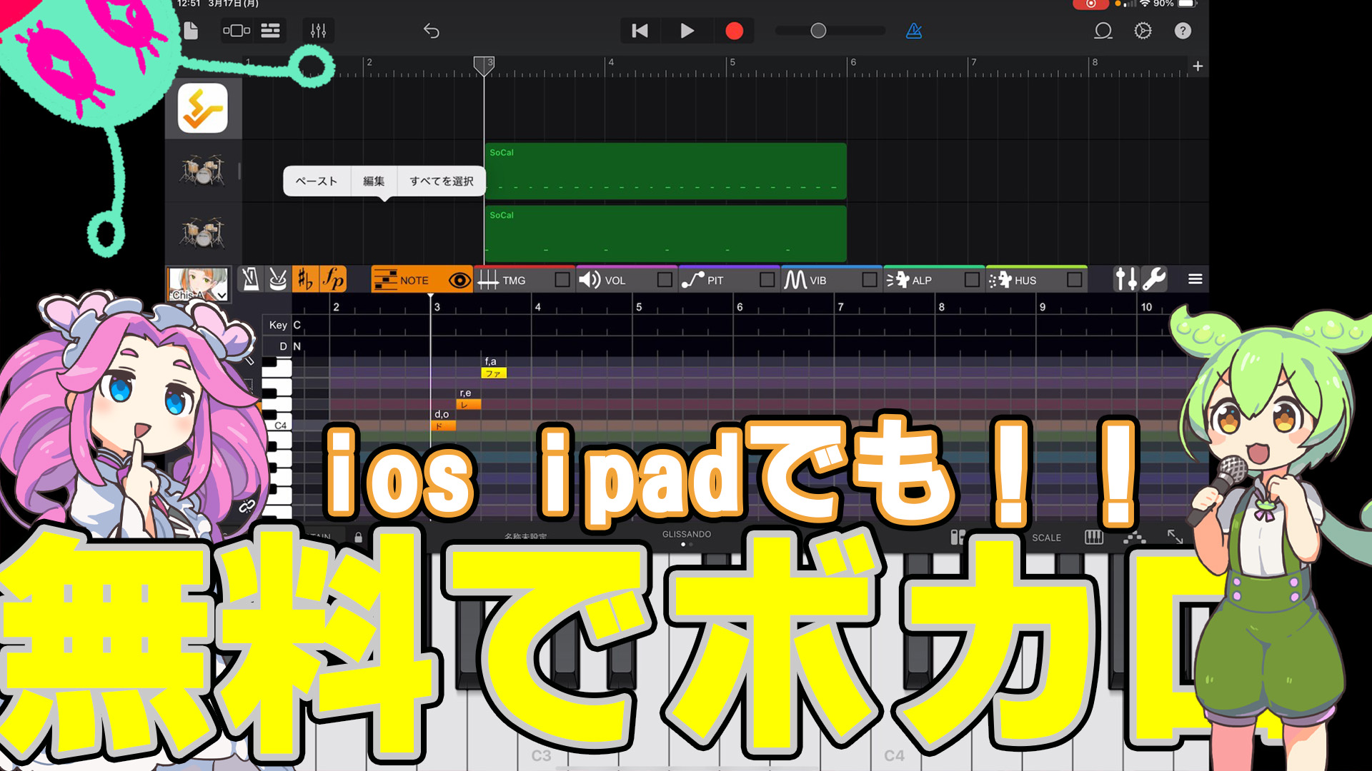 動画では結構前に出していたのですが、今年の頭くらいからiPadやiPhoneでも無料でボカロ曲が作れるようになったので、改めここでもご紹介しておきます。
