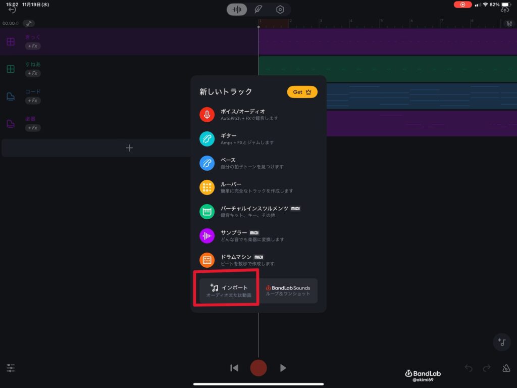 BandLabのボーカルを読みこんで曲全体を仕上げる