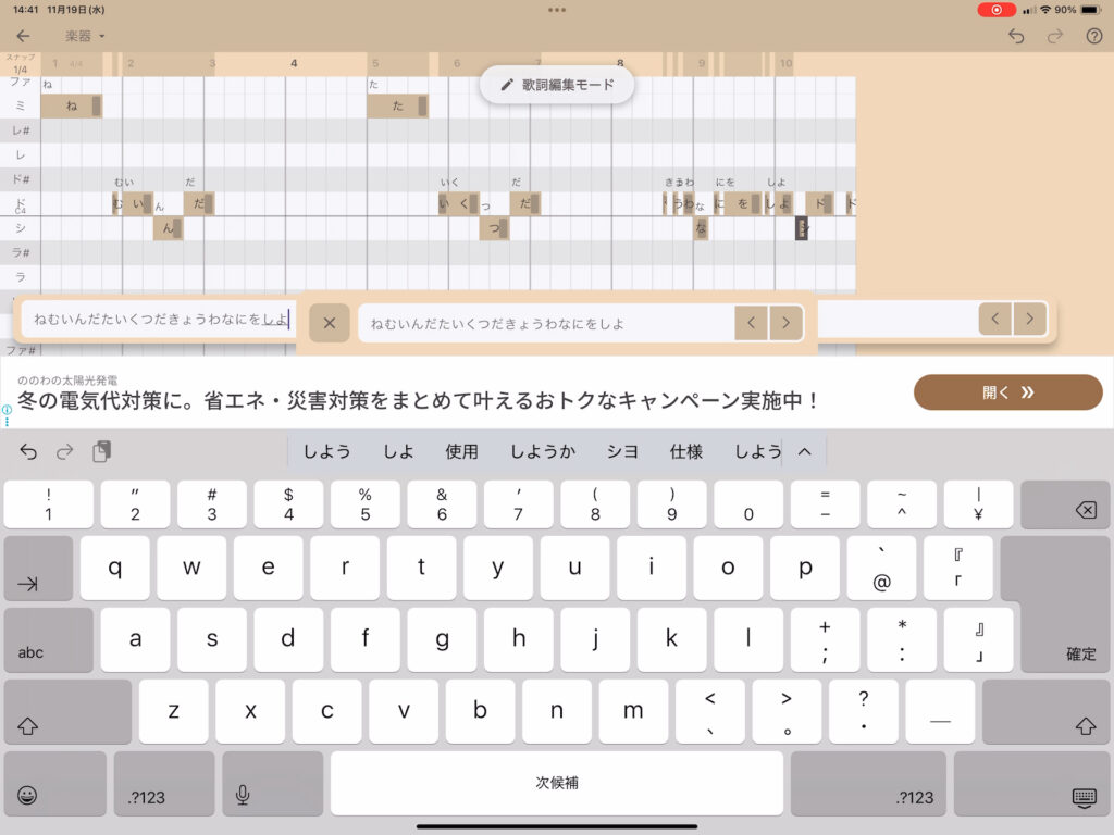 - ボイメロで歌詞の打ち込みと調整